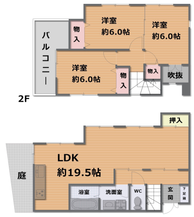 LDKは19.5帖、2階の洋室は全て6帖以上でロフトもついてます。